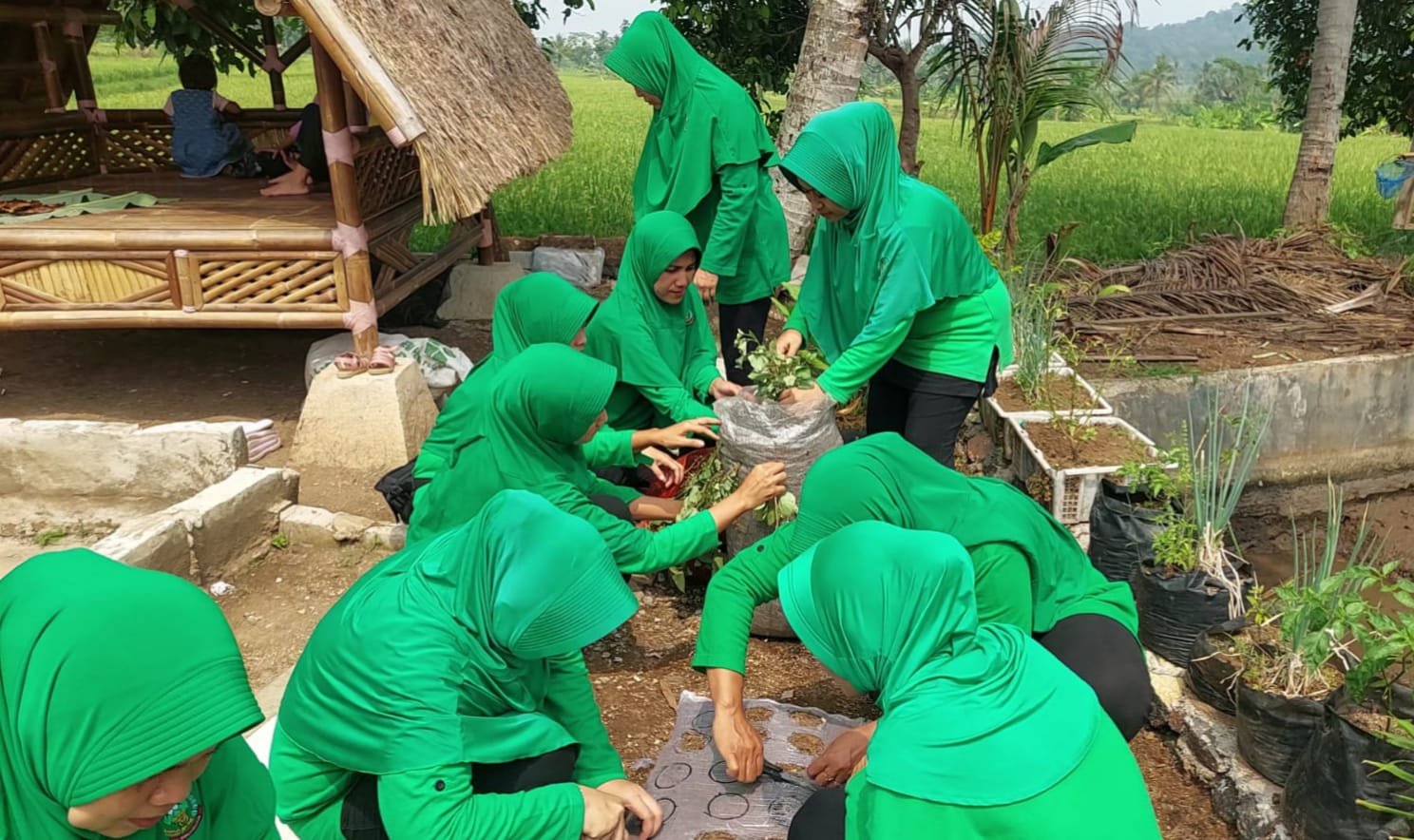 Lebih lanjut Ny. Dadang menjelaskan kegiatan ketahanan pangan yang saat ini dikerjakan Persit, kiranya akan dapat memberikan manfaat yang besar kepada seluruh masyarakat. Selain menjadi contoh, kedepannya akan menjadi cara masyarakat memanfaatkan lahan kosong, disekitar pekarangan rumah menjadi lebih bermanfaat.