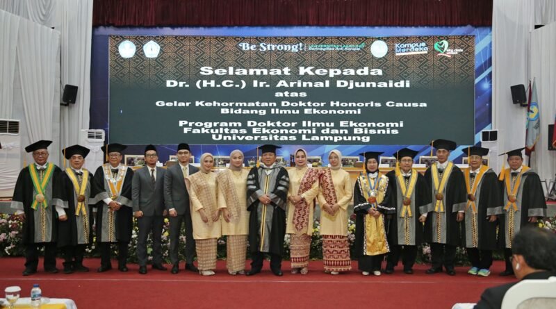 Adapun Gelar Doktor Honoris Causa diberikan karena Gubernur Lampung Arinal Djunaidi dinilai berprestasi dalam peningkatan perekonomian masyarakat.