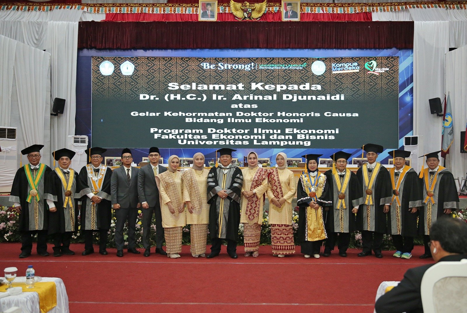 Adapun Gelar Doktor Honoris Causa diberikan karena Gubernur Lampung Arinal Djunaidi dinilai berprestasi dalam peningkatan perekonomian masyarakat.