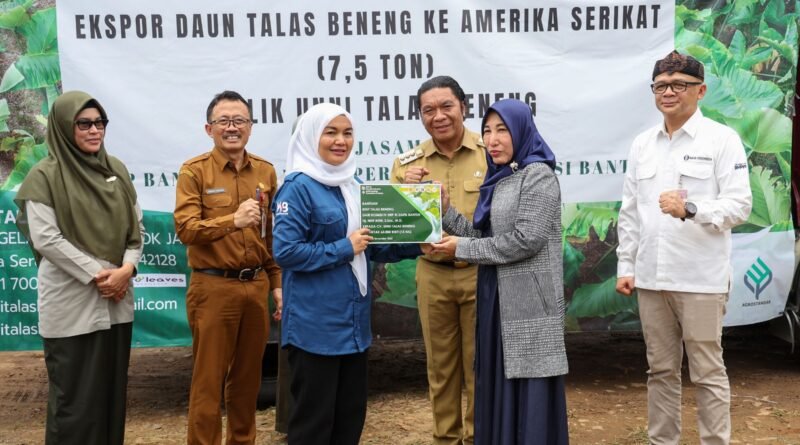 BANTEN.GERBANGPATRIOT.COM – Banten, Penjabat (Pj) Gubernur Banten Al Muktabar memberangkatkan pengiriman ekspor cacahan daun talas beneng ke Amerika Serikat. Ekspor yang dilakukan oleh CV UNNI Talas Beneng itu dinilai turut memberikan nilai tambah bagi para petani talas beneng.