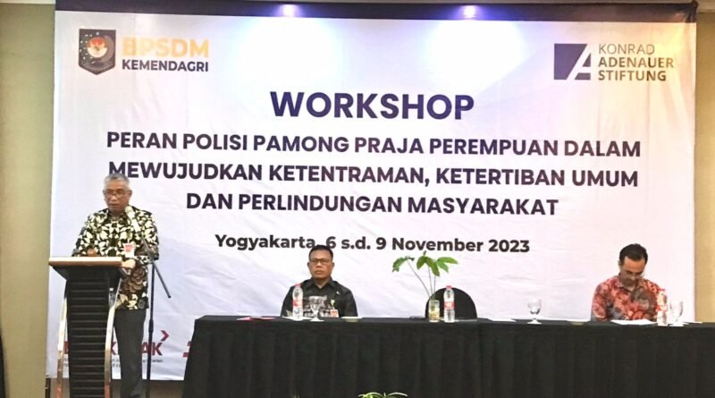 BANTEN.GERBANGPATRIOT.COM – Yogyakarta, Badan Pengembangan Sumber Daya Manusia (BPSDM) Kementerian Dalam Negeri (Kemendagri) bekerja sama dengan Konrad Adenauer Stiftung (KAS) Jerman Perwakilan Indonesia dan Timor Leste menggelar Workshop Peran Polisi Pamong Praja Perempuan dalam Mewujudkan Ketentraman, Ketertiban Umum dan Perlindungan Masyarakat. Workshop ini berlangsung di Hotel Horison Ultima, Yogyakarta, Selasa (7/11/2023).