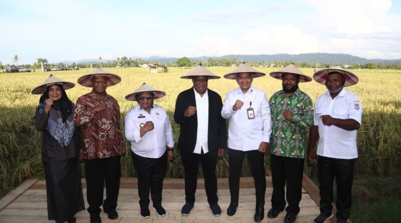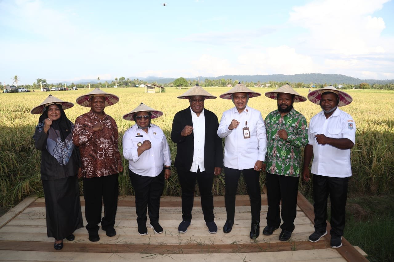 BANTEN.GERBANGPATRIOT.COM – Nabire, Wakil Menteri Dalam Negeri (Wamendagri) John Wempi Wetipo mengapresiasi pelaksanaan panen raya padi oleh kelompok tani Hidup Petani Nyata (HIPETA) di Desa Satuan Pemukiman 1 (SP1) Distrik Nabire Barat, Kabupaten Nabire, Provinsi Papua Tengah, Rabu (8/11/2023). Wempi berharap hasil panen tersebut dapat berkontribusi terhadap upaya menjaga ketersediaan pangan di tingkat keluarga.