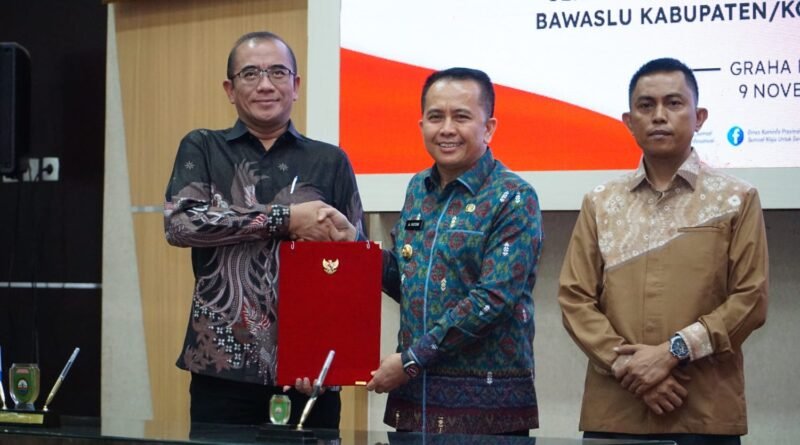 .GERBANGPATRIOT.COM – Palembang, Pemerintah Provinsi (Pemprov), Kabupaten, dan Kota Se-Sumatera Selatan (Sumsel) secara resmi menandatangani Naskah Perjanjian Hibah Daerah (NPHD) dana Pilkada Serentak 2024 di Auditorium Bina Praja, Kamis (9/11/2023). Penandatanganan ini disaksikan langsung oleh Ketua Komisi Pemilihan Umum (KPU) Republik Indonesia Hasyim Asy’ari.