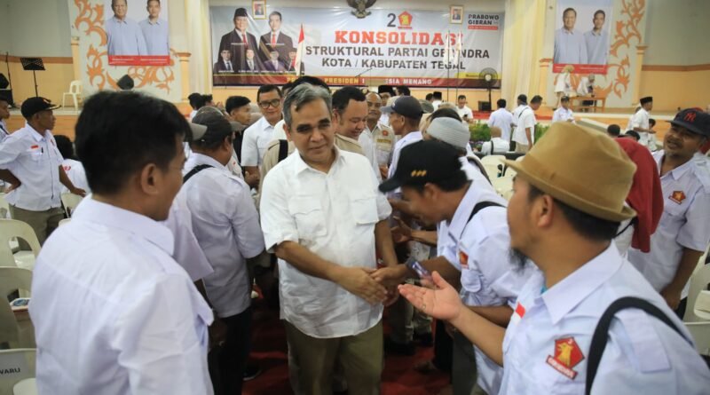 GERBANGPATRIOT.COM – JAKARTA, Sekjen Partai Gerindra Ahmad Muzani menghadiri konsolidasi bersama ribuan kader di Kabupaten Tegal dan Kota Tegal, Kamis (9/11). Dalam sambutannya Muzani menyinggung adanya ketidaksukaan terhadap pasangan capres cawapres Prabowo Subianto-Gibran Rakabuming Raka yang akan berkontestasi pada Pilpres 2024.