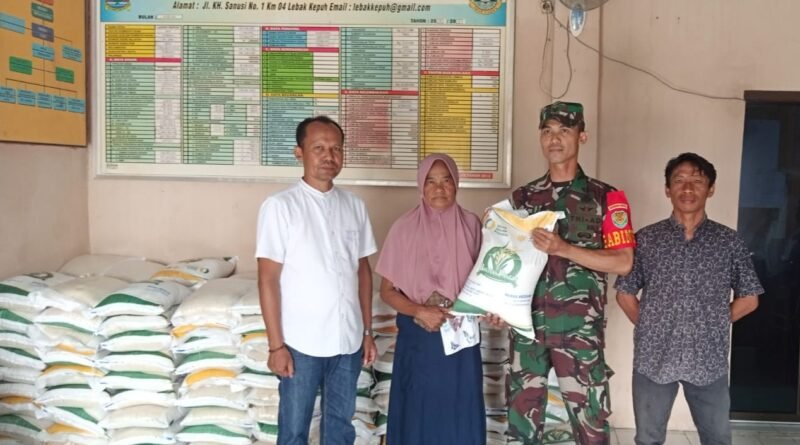Babinsa Koramil 0602-10/Pontang Dampingi Kades Salurkan Bantuan Sosial Beras