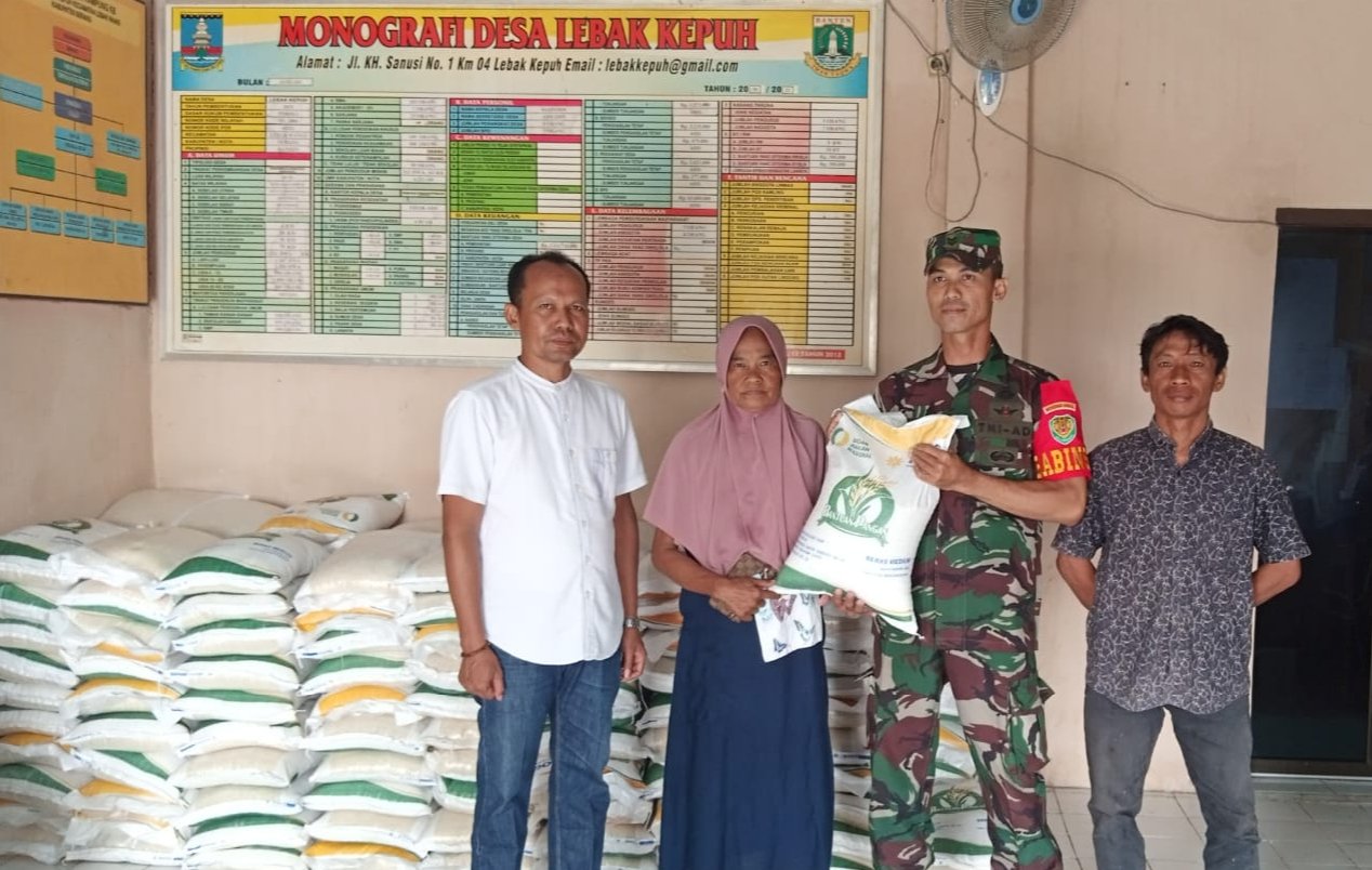 Babinsa Koramil 0602-10/Pontang Dampingi Kades Salurkan Bantuan Sosial Beras