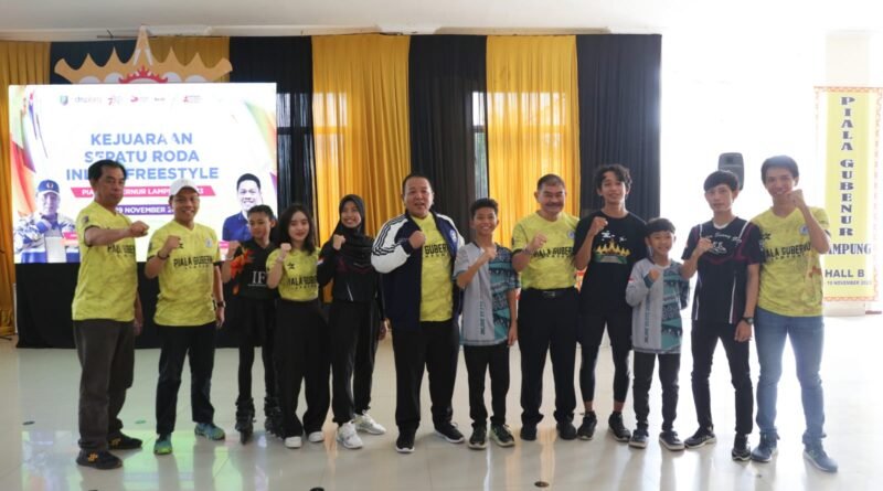 BANTEN.GERBANGPATRIOT.COM – Bandar Lampung, Gubernur Lampung Arinal Djunaidi membuka Kejuaraan Sepatu Roda Inline Freestyle Piala Gubernur Lampung 2023 yang berlangsung 18-19 November 2023 dan diikuti sedikitnya 180 peserta, di Gedung Hall B, PKOR Way Halim, Sabtu (18/11/2023).