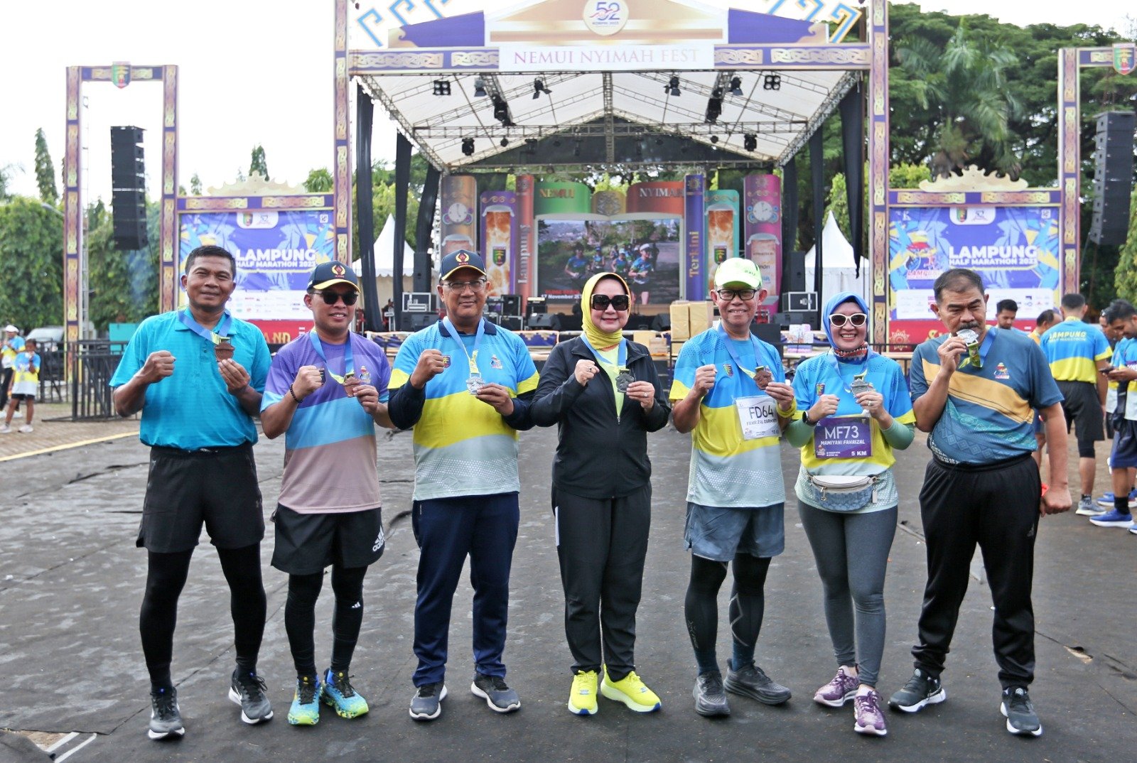 Sementara itu, Ketua Tim Penggerak PKK Provinsi Lampung Ibu Riana Sari Arinal menyampaikan selamat atas kesuksesan pelaksanaan Lampung Half Marathon 2023.