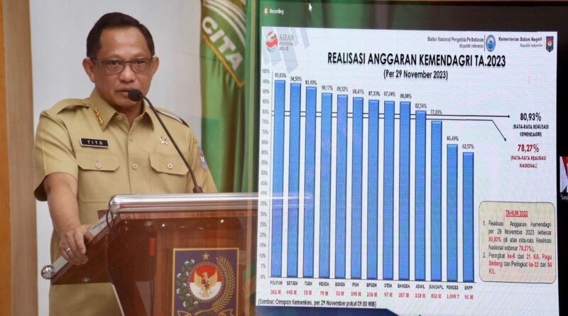 BANTEN.GERBANGPATRIOT.COM – Jakarta, Menteri Dalam Negeri (Mendagri) Muhammad Tito Karnavian secara simbolis menyerahkan Daftar Isian Pelaksanaan Anggaran (DIPA) Tahun Anggaran (TA) 2024 kepada para pejabat di lingkungan Kementerian Dalam Negeri (Kemendagri) dan Badan Nasional Pengelola Perbatasan (BNPP). Penyerahan itu berlangsung di Gedung Sasana Bhakti Praja (SBP) Kemendagri, Jakarta, Rabu (29/11/2023).