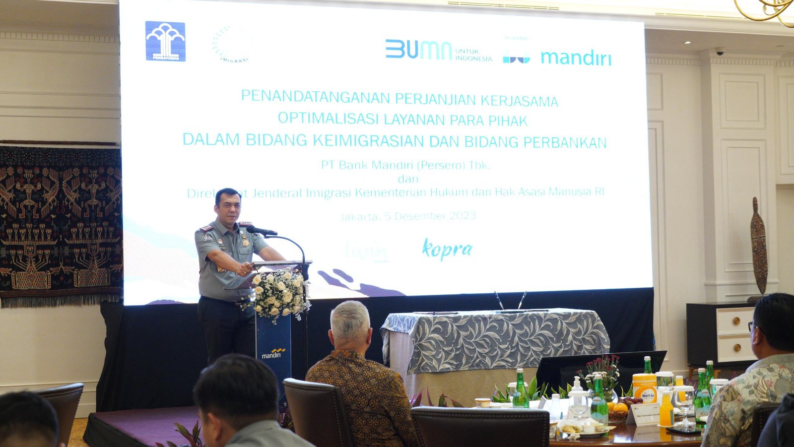 “Kerjasama ini juga menjawab 2 (dua) dari 4 (empat) tugas yang diberikan Presiden pada saat menunjuk saya untuk menjabat sebagai Dirjen Imigrasi yaitu golden visa dan digitalisasi layanan keimigrasian,” jelas Direktur Jenderal Imigrasi, Silmy Karim pada acara penandatanganan PKS bersama Direktur Utama Bank Mandiri, Darmawan Junaidi pada Selasa (05/12/2023) di Mandiri Club, Jakarta Selatan.