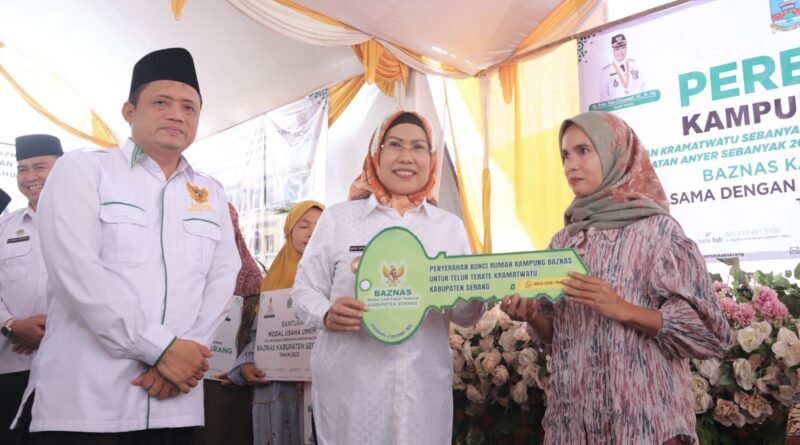 BANTEN.GERBANGPATRIOT.COM – Serang, Bupati Serang Ratu Tatu Chasanah meresmikan rumah layak huni hasil pembangunan dari Badan Amil Zakat Nasional (Baznas) Kabupaten Serang di Kecamatan Kramatwatu, Rabu (6/12/2023).