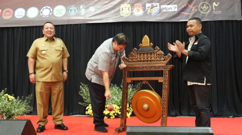 BANTEN.GERBANGPATRIOT.COM – Bandar Lampung, Menteri Koordinator Bidang Perekonomian Republik Indonesia Airlangga Hartanto, didampingi Gubernur Lampung Arinal Djunaidi membuka Kongres Nasional Himpunan Mahasiswa Ilmu Politik Indonesia VIII, di Gedung Bagas Raya, Bandar Lampung, Senin (11/12/2023).