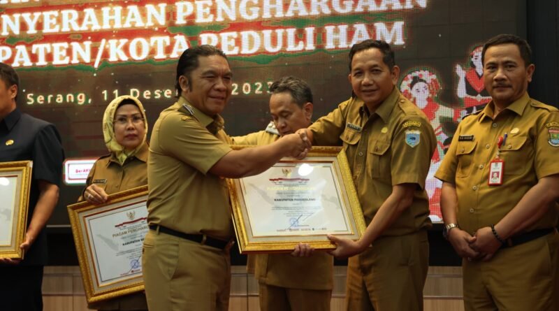 BANTEN.GERBANGPATRIOT.COM – Banten, Penjabat (Pj) Gubernur Banten Al Muktabar menyerahkan Penghargaan Kabupaten/ Kota Peduli HAM kepada Bupati/Walikota se-Provinsi Banten. Tahun ini, delapan (8) Kabupaten/Kota di Provinsi Banten mendapatkan Penghargaan Kabupaten/ Kota Peduli HAM.