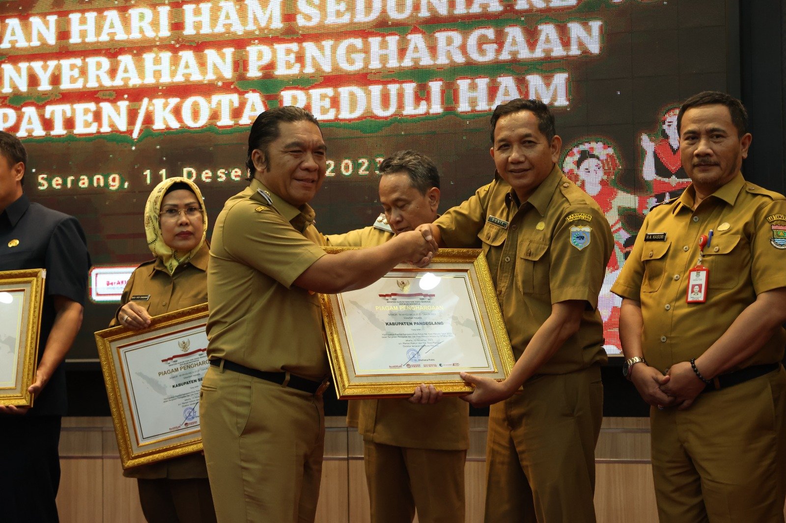 “Selamat atas segala prestasi yang dicapai. Pencapaian-pencapaian yang kita dapat ini hasil kerjasama kita semua,” ungkap Al Muktabar saat memberikan sambutan pada Peringatan Hari HAM se-Dunia ke-75 dan Penyerahan Penghargaan Kabupaten/ Kota Peduli HAM di Pendopo Gubernur Banten, Senin (11/12/2023).