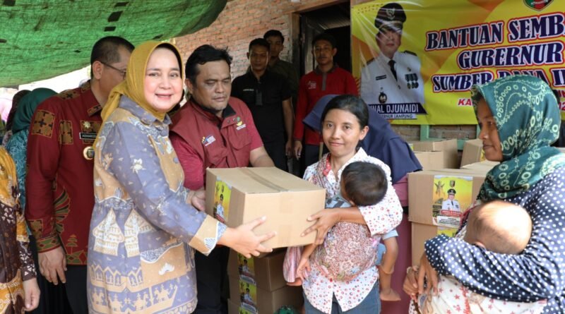 BANTEN.GERBANGPATRIOT.COM – Lampung Tengah, Ketua Tim Penggerak PKK Provinsi Lampung Ibu Riana Sari Arinal membagikan paket bantuan sembako penanganan stunting kepada Ibu Hamil dan Ibu yang memiliki Balita di Kelurahan Simbarwaringin, Kecamatan Trimurjo, Kabupaten Lampung Tengah, Jum’at (15/12/2023).