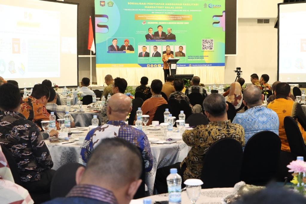 BANTEN.GERBANGPATRIOT.COM – Makassar, Kementerian Dalam Negeri (Kemendagri) berkomitmen memperkuat pengembangan program sertifikasi halal di tingkat global bagi Usaha Mikro, Kecil, dan Menengah (UMKM) melalui Anggaran Pendapatan dan Belanja Daerah (APBD). Komitmen tersebut diwujudkan bersama Kementerian Agama (Kemenag) dengan menggelar Sosialisasi Penyiapan Anggaran Fasilitasi Program Mandatory Halal 2024 sesuai Peraturan Menteri Dalam Negeri (Permendagri) Nomor 15 Tahun 2023. Adapun acara tersebut berlangsung secara hybrid dari Hotel Claro, Makassar, Sulawesi Selatan, Selasa (19/12/2023).
