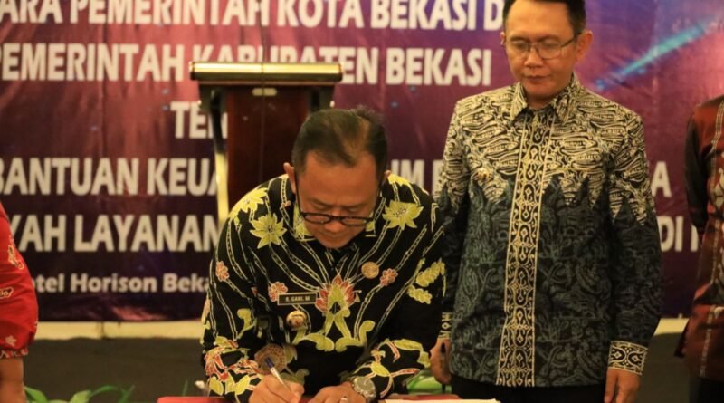 Pj. Wali Kota Bekasi dan Pj. Bupati Bekasi Sepkat Tandatangani Pemberian Bantuan Keuangan Umum serta Pemisahan Aset