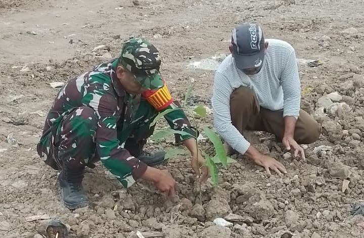 Antisipasi Bencana, Koramil 0602-02/Kasemen Gelar Karbak Penghijauan Di Bantaran Sungai