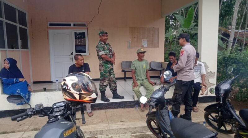 BANTEN.GERBANGPATRIOT.COM – Pandeglang, Babinsa Koramil 0111/Pagelaran Kodim 0601/Pandeglang Serma Agus Rizal bersama Bhabinkamtibmas Polsek Patia Aipda Fatur melaksanakan kegiatan Komunikasi Sosial (Komsos) bersama Linmas Desa Cimoyan Kecamatan Patia Pandeglang Banten, Sabtu (30/12/23)