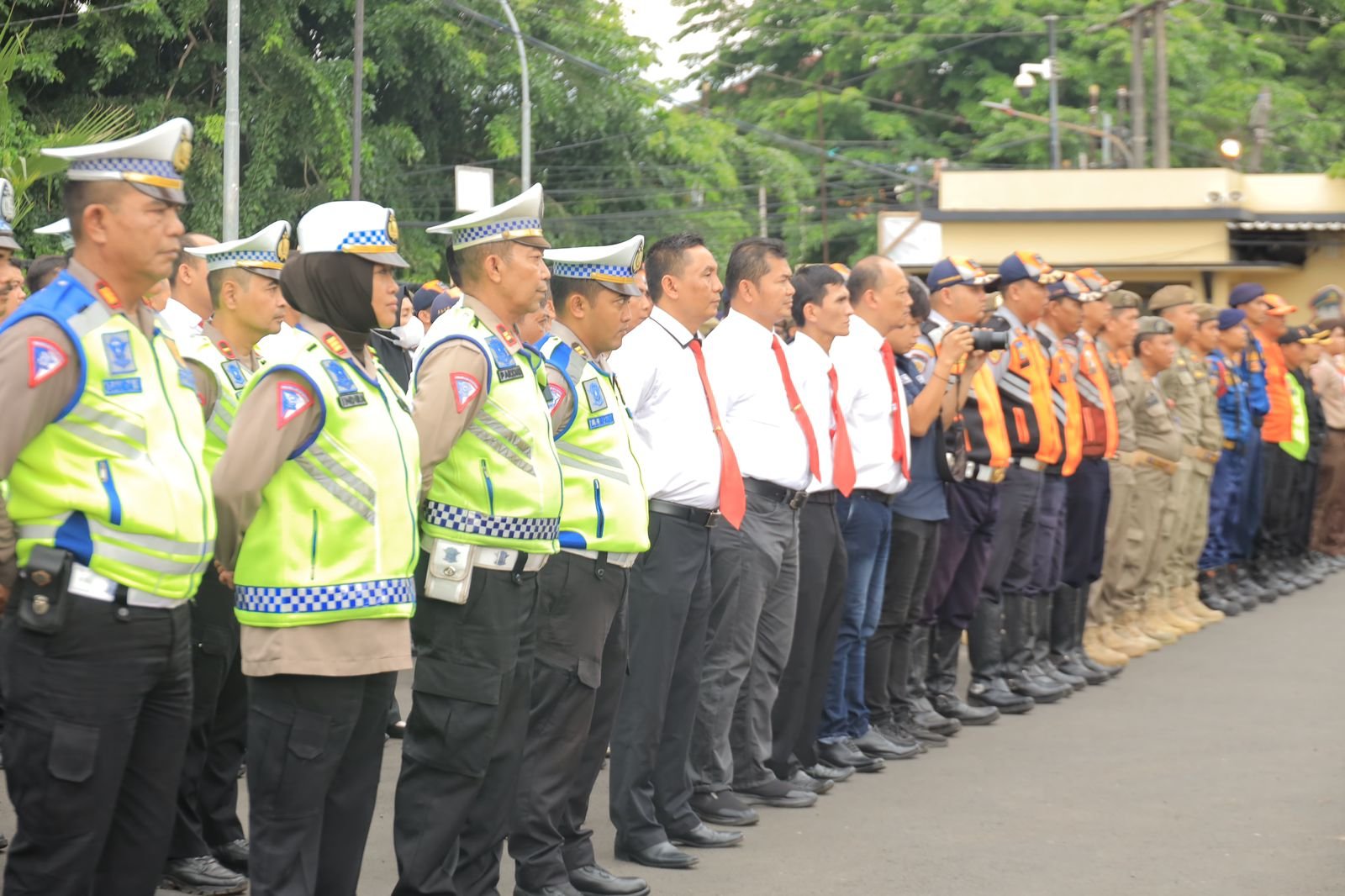 Adapun peserta apel tersebut terdiri dari gabungan personil Polri, TNI, Kepala Dinas Perhubungan Zeno Bachtiar beserta jajaran, Kepala Satuan Satpol PP. Karto Beserta Jajaran, Kepala Dinas Kesehatan Tanti Rohilawati Beserta Jajaran Nakes, Kepala Dinas Pemadam Kebakaran dan Penyelamatan yang totalnya berjumlah 1.638 orang yang siap disebar ke 15 titik prioritas yang diprediksi menjadi pusat berkumpulnya masyarakat.