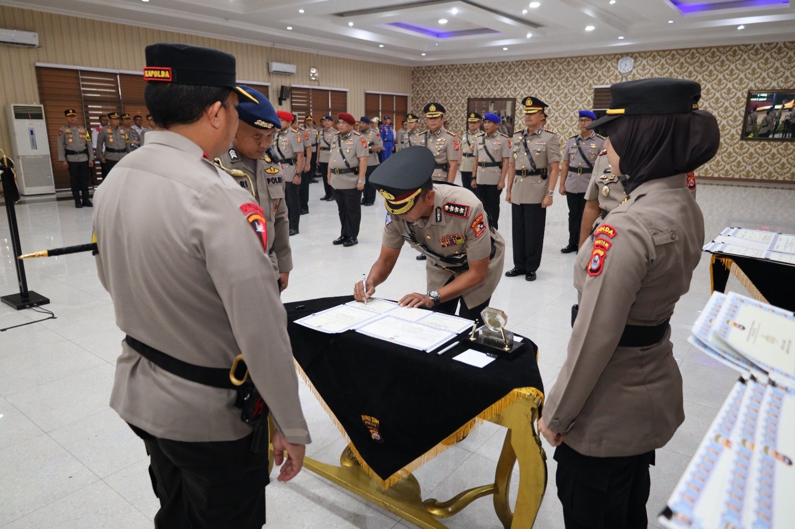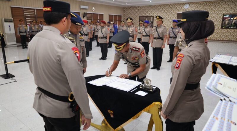 BANTEN.GERBANGPATRIOT.COM – Serang, Kapolda Banten Irjen Pol Prof. Dr. Rudy Heriyanto memimpin upacara serah terima Pejabat Utama (PJU) Polda Banten yaitu Irwasda Polda Banten, Dirlantas Polda Banten, Dirbinmas Polda Banten, Dirresnarkoba Polda Banten, Dirsamapta Polda Banten, Dirpolairud Polda Banten, Dansat Brimob Polda Banten, Kapolresta Tangerang dan Kapolres Pandeglang bertempat di Aula Serbaguna Polda Banten pada Selasa (02/01).