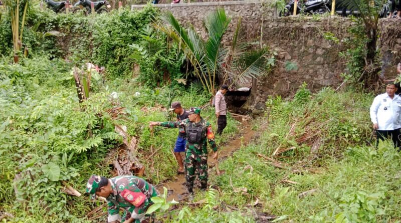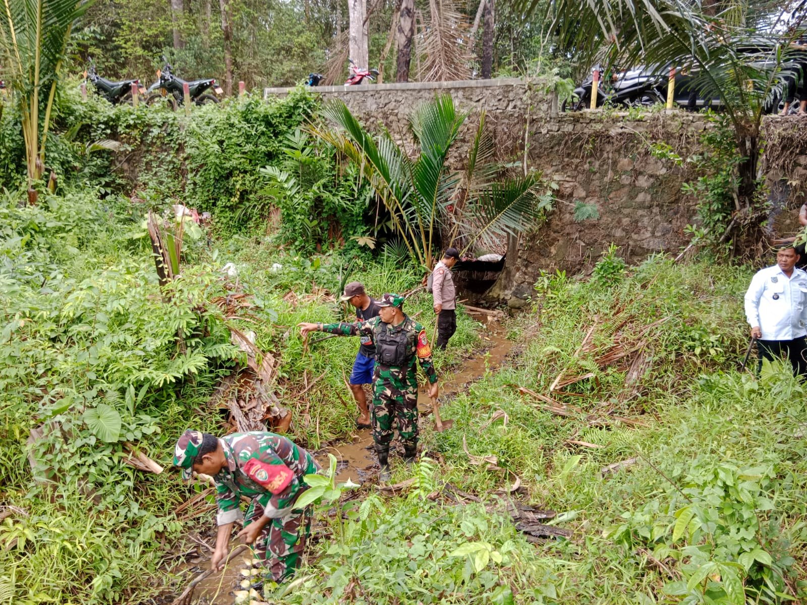 Peduli Kebersihan Lingkungan, Koramil 0115/Cimanggu Laksanakan Karya Bakti Bersihkan Saluran Air