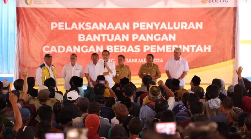 BANTEN.GERBANGPATRIOT.COM – Serang, Penjabat (Pj) Gubernur Banten Al Muktabar mendampingi Presiden RI Joko Widodo tinjau Gudang Beras Bulog (GBB) Umbul Tengah Sub Divre Serang di Jl Raya Cilegon Km. 3,5 Drangong, Kota Serang, Senin, (08/01/2024). Presiden Jokowi juga melakukan penyerahan bantuan pangan Cadangan Beras Pemerintah (CBP) kepada masyarakat Keluarga Penerima Manfaat (KPM) di Kota Serang.
