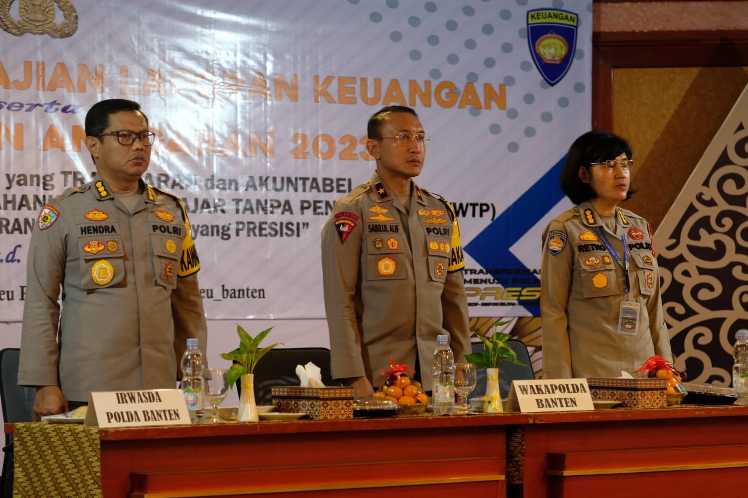 Dihadiri juga oleh Plt Kator Wilayah Direktorat Jenderal Perbendaharaan Provinsi Banten Penata Tk.I Ibu Royana Dewi Triastuti, Kepala Pimpinan Cabang BRI Serang Bapak Eko Hary Wijayanto, Kaurkeu, Kasikeu, bendaraha penerimaan satker jajaran Polda Banten.