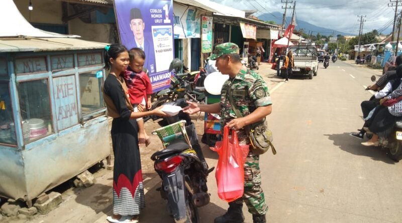 Jum’at Berkah, Koramil 0108/Bojong Kodim Pandeglang Bagikan Nasi Kotak