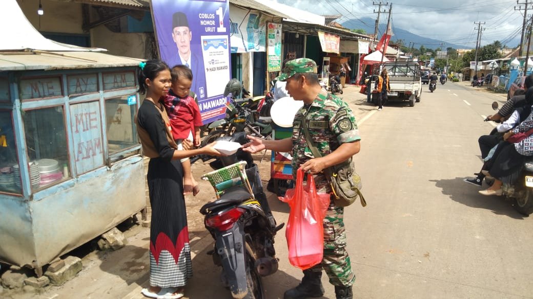 Sementara itu Danramil 0108/Bojong menyampaikan, para Babinsa berkeliling menyasar warga yang kurang mampu maupun para pejuang pencari nafkah seperti tukang ojek, pemulung rongsokan barang bekas dan lainnya.