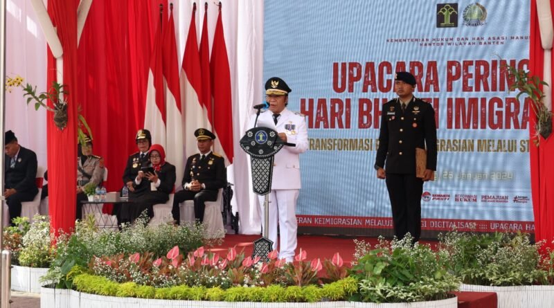 BANTEN.GERBANGPATRIOT.COM – Serang, Penjabat (Pj) Gubernur Banten Al Muktabar menjadi Inspektur Upacara Peringatan dan Syukuran Hari Bhakti Imigrasi ke-74 di lapangan Kantor Wilayah Kementerian Hukum dan HAM Provinsi Banten di Jl. Brigjen KH Syam’un No. 44D, Kota Serang, Jum’at, (26/01/2024).