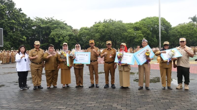 BANTEN.GERBANGPATRIOT.COM – Bekasi, Apel rutin yang dilakukan oleh para pegawai Pemerintah Kota Bekasi yang dirangkaikan dengan beberapa penyerahan penghargaan masa purnabhakti serta launching aplikasi Lapak UMKM Terintegrasi (PAKUMIS) oleh Pejabat (Pj.) Wali Kota Bekasi, R. Gani Muhamad di Plaza Pemerintah Kota Bekasi.