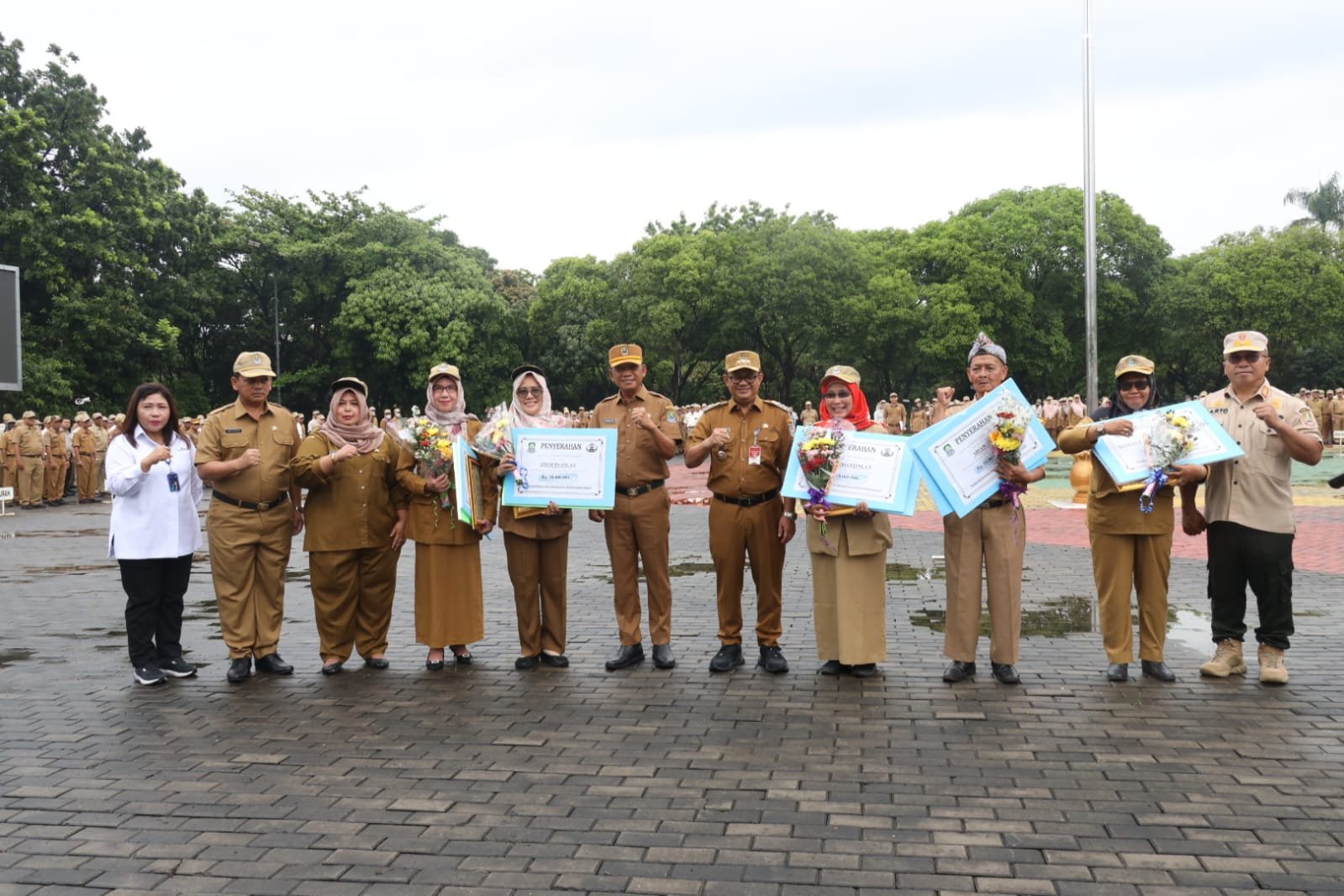 BANTEN.GERBANGPATRIOT.COM – Bekasi, Apel rutin yang dilakukan oleh para pegawai Pemerintah Kota Bekasi yang dirangkaikan dengan beberapa penyerahan penghargaan masa purnabhakti serta launching aplikasi Lapak UMKM Terintegrasi (PAKUMIS) oleh Pejabat (Pj.) Wali Kota Bekasi, R. Gani Muhamad di Plaza Pemerintah Kota Bekasi.