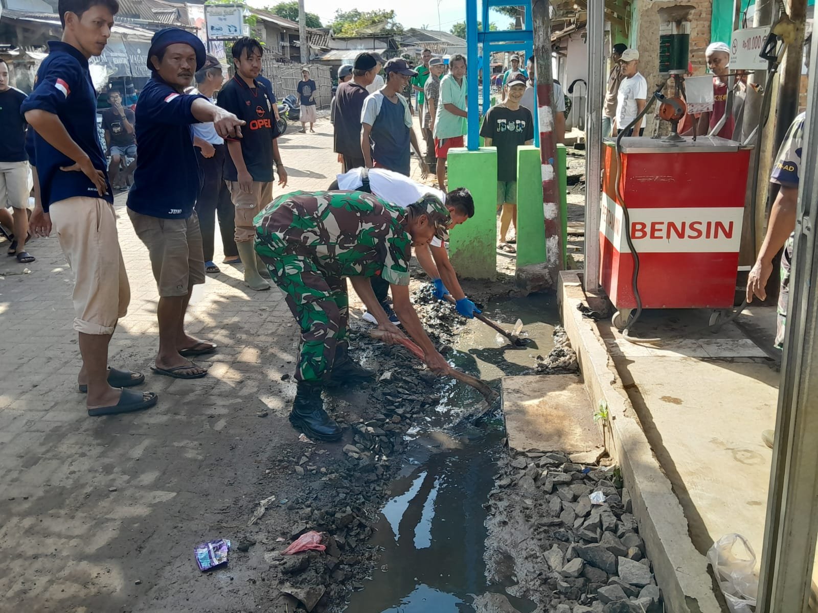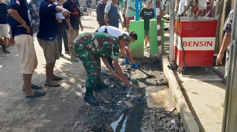 Jika tidak cepat dibersihkan, kondisi parit yang tergenang akan menjadi tempat bersarangnya bibit penyakit dan juga penyebab banjir. Untuk itu kita menggelar aksi gotong royong membersihkan parit, terutama disepanjang kawasan pemukiman, hal tersebut disampaikan Danramil Kapten Inf. Aries Syafarudin saat kegiatan gotong royong berlangsung.