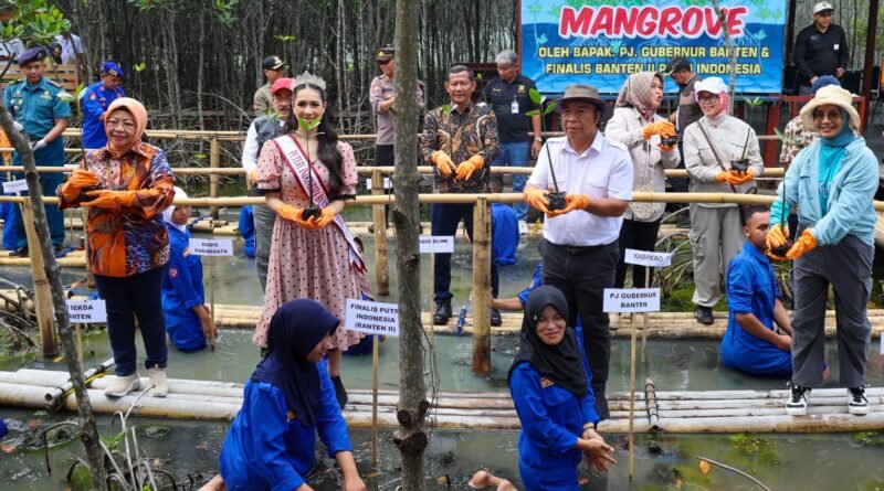 BANTEN.GERBANGPATRIOT.COM – Serang, Penjabat Gubernur Banten Al Muktabar menanam pohon mangrove di Smart Fisheries Village Politeknik Ahli Usaha Perikanan Karangantu, Kota Serang, Minggu (18/2/2024). Bentuk pemeliharaan terhadap ekosistem di kawasan Teluk Banten melibatkan Pj Sekretaris Daerah Provinsi Banten Virgojanti, Finalis Putri Indonesia 2024 Banten 2 Latisa Maura dan para Kepala Organisasi Perangkat Daerah (OPD) Pemprov Banten.